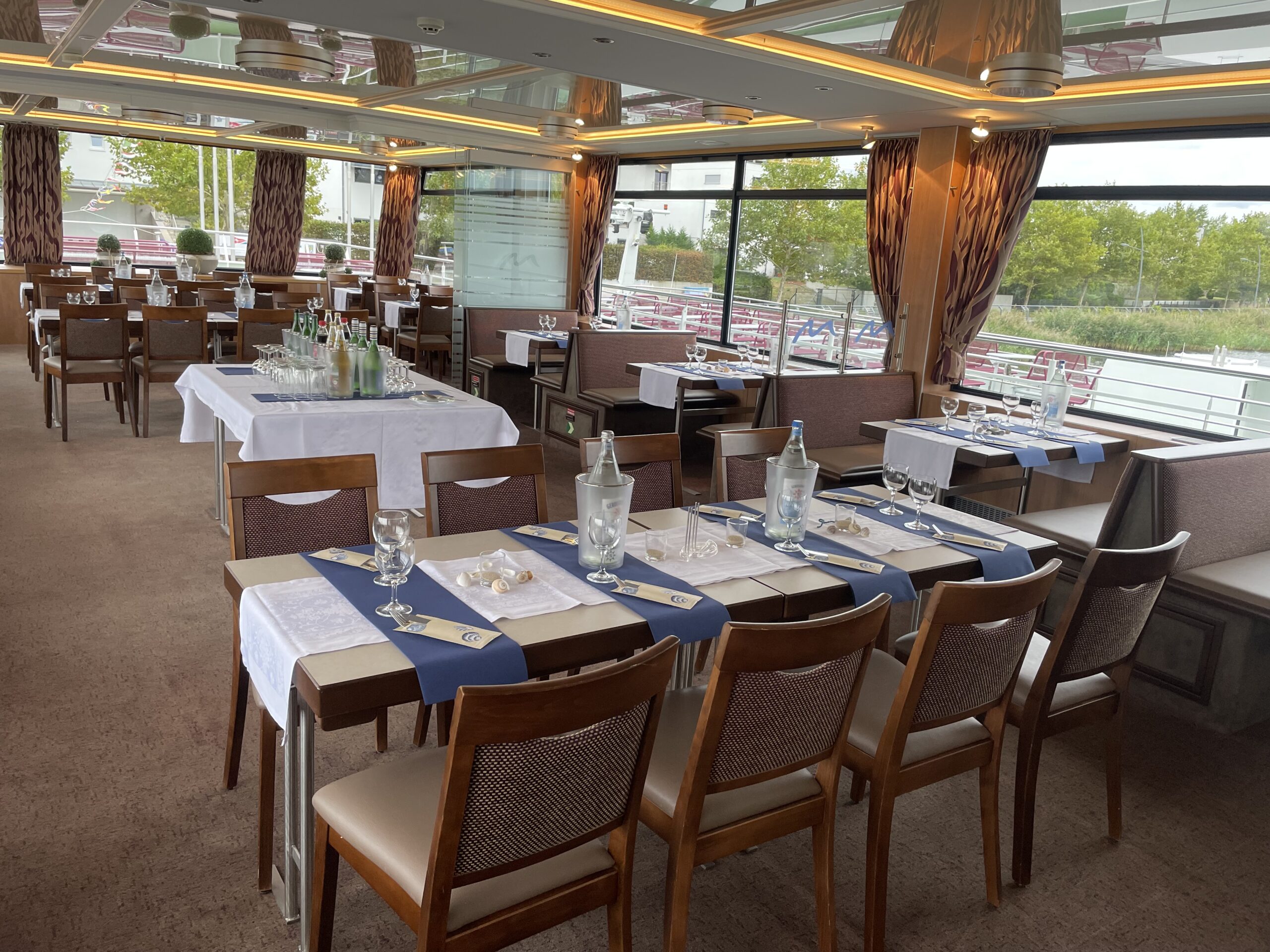 An Bord unserer Schiffe können Sie aus einer reichhaltigen Bordgastronomie, mit verschiedenen kalten und warmen Speisen sowie Getränken, wählen!